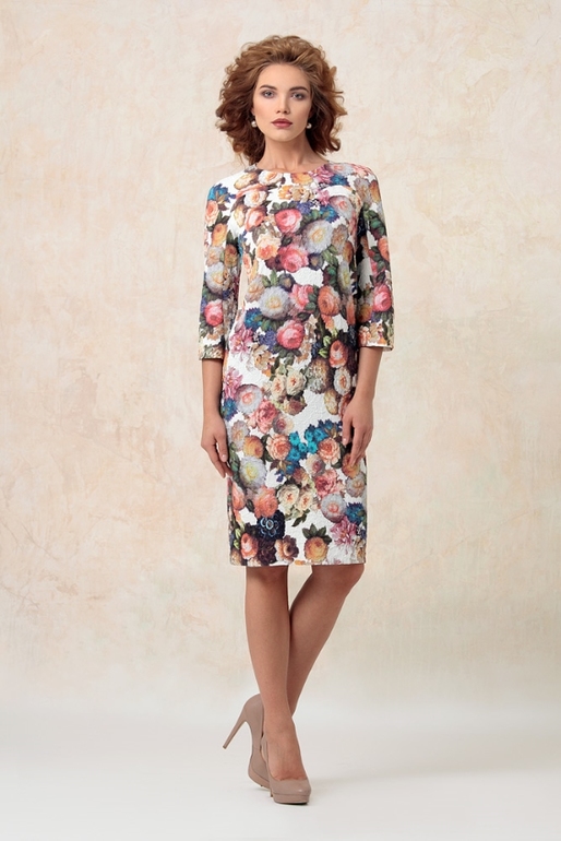 Привлекательное платье прямого силуэта из мягкой стрейчевой принтованной ткани, горловина V-образная, рукав цельнокроенный. Длина выше колена.![]()