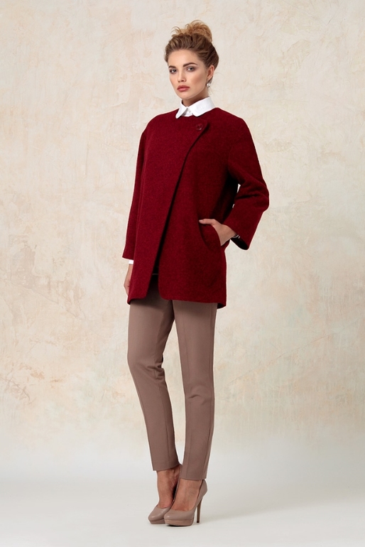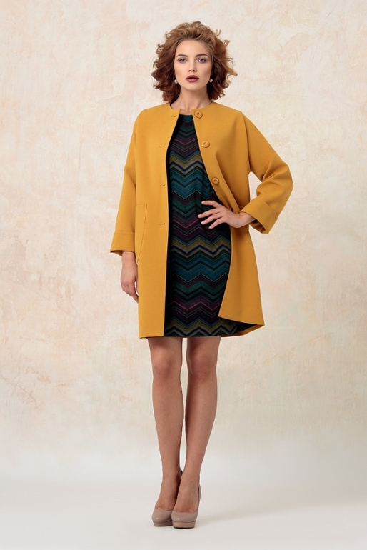 Комфортное пальто прямого силуэта. Рукав длинный, застёжка на пуговицах. Пальто без воротника, горловина округлая. Длина выше колена. Изделие на подкладке.