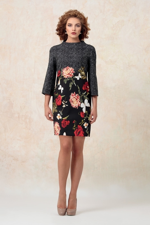 Итальянская цветочная живопись на глубоком фоне изысканно смотрится на фактурной структуре жаккарда из Греции. Плптье прямого покроя. В таком платье Вы будете обязательно в центре внимания!Актуальный крой рукава с вытачкой и фактурный крой лифа. Длина чуть ниже колена.