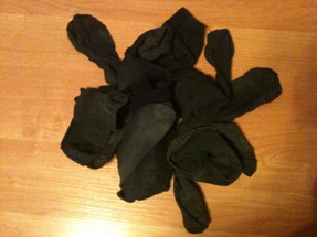 А сама идея очень проста: мужу покупать одинаковые носки и тогда не надо будет их сидеть и разбирать по цветам и размерам, рисункам и закорючкам (иногда бывают закорючки, а не рисунки на носках