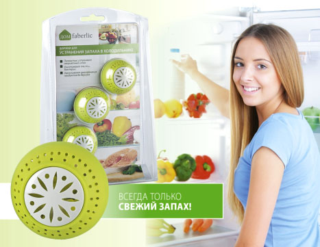Я купила себе специальные шарики фаберликовские для холодильника, действительно все неприятные запахи поглощают.