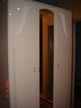 Ковры и мебельВот наконецто приобрели, вчера привезли и наш папочка до 2:30 ночи собирал, сейчас намыла. Жалко пространства, но без шифонера жить невозможно - все вещи раскиданы. Справа чисто плки, а где заркало и дверь штанга и полка сверху.