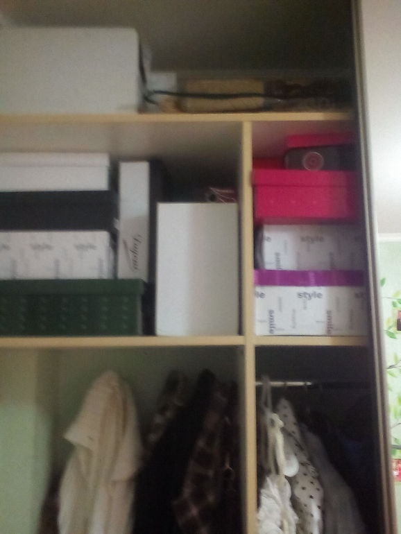 РазноеДевочки, выручайте!Может у вас какие идеи есть!! Вообщем в коридоре стоит большой встроенный шкаф-купе, когда его открываешь, наверху вот такая "красота" (коробки из под обуви, и другая утварь, как всегда нужная!). Хочу всё это дело как то прикрыть...а как ненаююю!!!