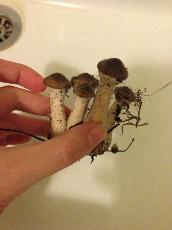 Самые что ни на есть осенние опята))) не парьтесь. переберите их. помойте и кушайте... мы такие каждый год собираем)))))