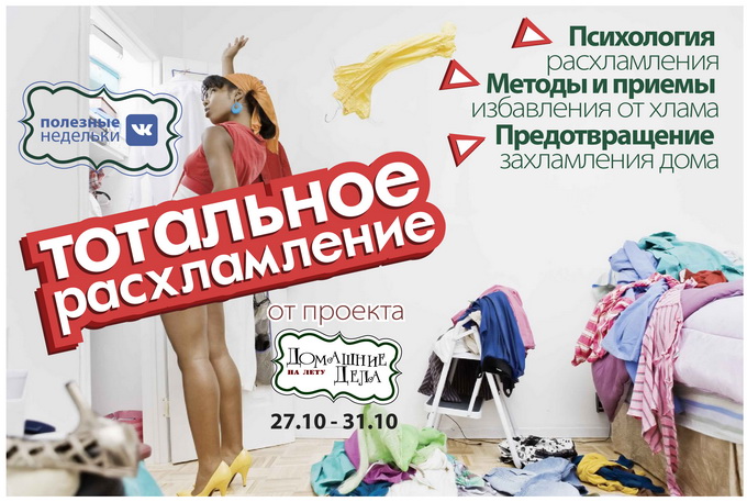 Полезная информация, практические задания и общество единомышленниц помогут вам легко и с улыбкой расстаться с хламом в вашей квартире!