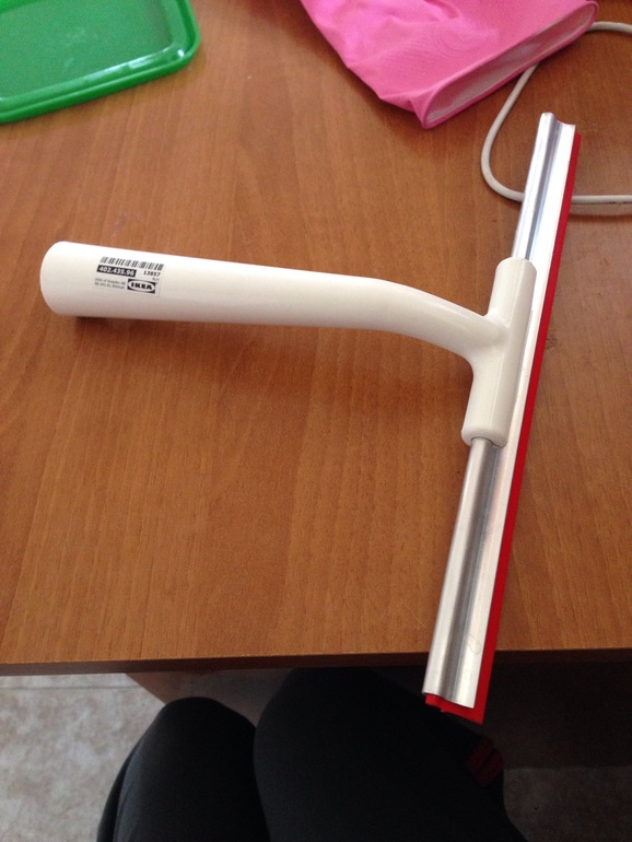 Моете окно, и не вытираете газеткой))) а сгоняете воду этим "сгоном". Оооочень удобно, у меня нечто подобное есть.