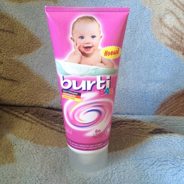 Средством Burti для стирки пользуюсь давно, но гель для ручной стирки оказался у меня впервые и как нельзя кстати. Сегодня я его попробовала первый раз. Гель имеет приятный запах, что меня очень радует, в сравнении с перспективой стирать неприятным на запах хозяйственным мылом. Честно говоря, ранее никогда не застирывала пятна на детских вещах, в надежде на силу порошков. Надежды оказались напрасными. Поэтому сегодня я полная уверенности взяла в руки этот замечательный розовый тюбик и решила застирать пятно от детского стула. Гель оказался густым и прозрачным. Пятно отошло достаточно быстро. Так же хочу заметить, что моя кожа очень склонна к сухости от всяких средств, но после этого средства никаких ощущений сухости я не заметила. После стирки рисунок, на котором располагалось пятно, немного побледнел. Реакции на немецкие средства Burti у моего ребенка никогда не было, за что им огромное спасибо!!!