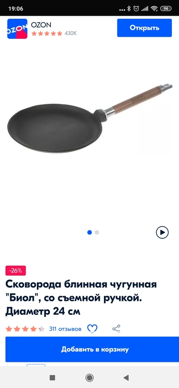 Я тоже купила себе чугунную сковороду.