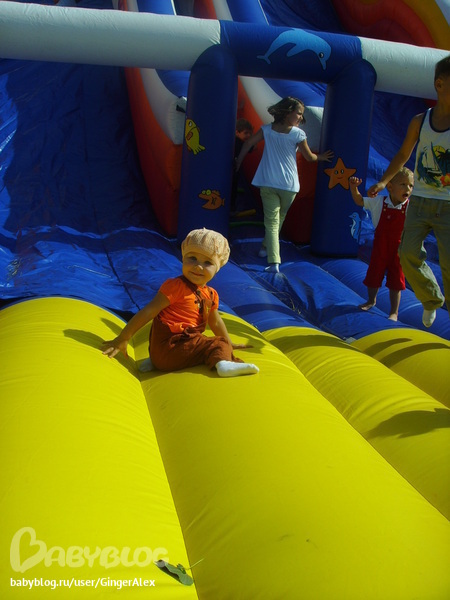 Мы ходим в Мегу на детскую площадку, в будни там немного народу. Лизу оттуда очень сложно увести. Она научилась сама залезать и скатывать с горки и может делать это часами!!!