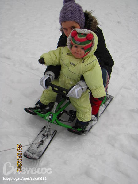 Идем на прогулкуПока не растаял снег, вышли погулять на снегокате со старшей дочкой. Посадили и маленькую- восторгу не было предела. Папа катал быстро-быстро- визжала от восторга!!!!!