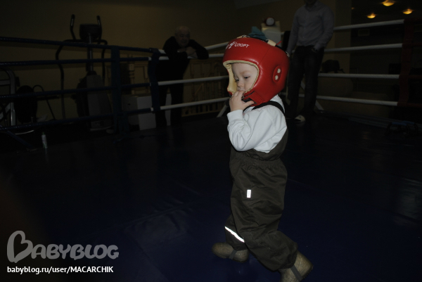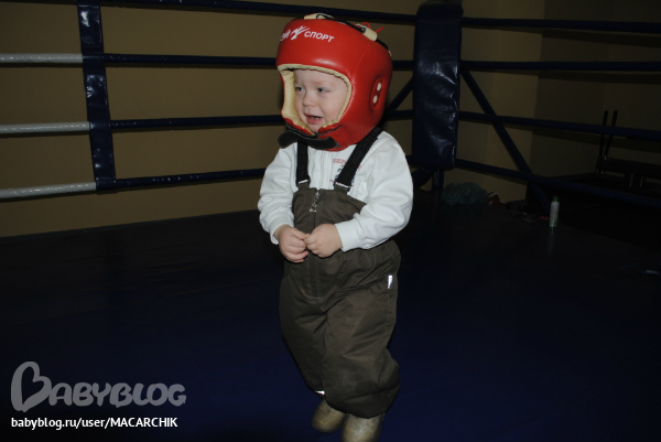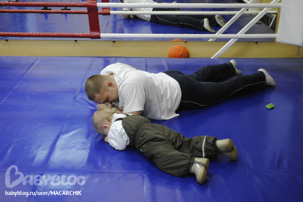 Растем и развиваемсяПервый выход на ринг))) дома тренировался и наконец-то первый раз папа взял его с собой! Восторгу не было предела. Муж активно взялся за спортивное воспитание нашего сынишки, а мне его жалко, мне всё кажется, что он ещё такой маленький, а вдруг ударится или ещё чего(((