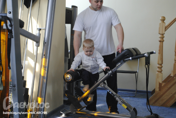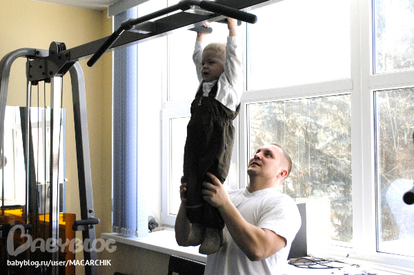 Ходит с ним пешком по лестницам в подъезде, научил Макара ходить на руках, делать зарядку, боксировать...
