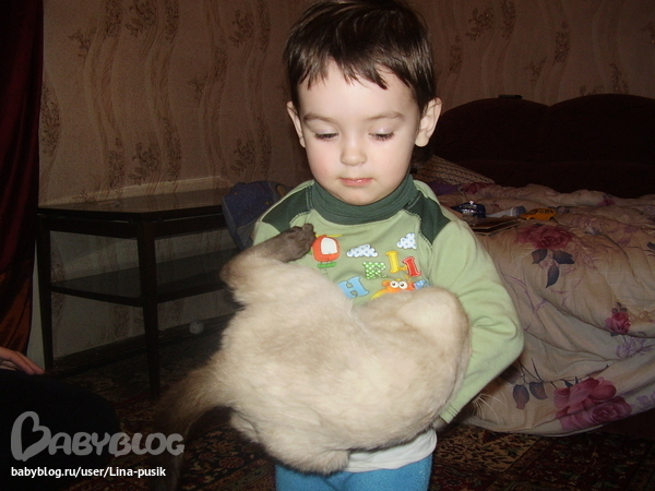 P.S. И самое главное, кошка будет иметь полное право чего-нибудь у ребенка прокусить или заехать когтем в глаз, она защищает себя, раз уж дурные родители/хозяева, начитавшись умных книжек, этого сделать не в состоянии. А ведь с таких хозяев станется ее наказать (может даже усыпить) за эту совершенно естественную и оправданную реакцию. Сюжетец прям из "Белого Бима Верное Ухо".