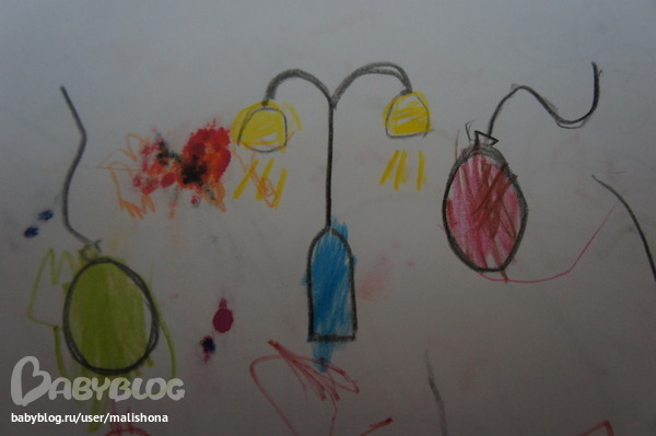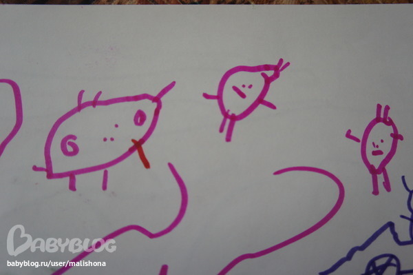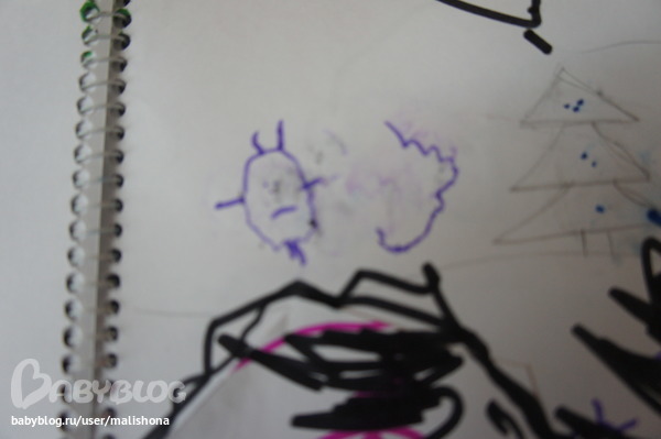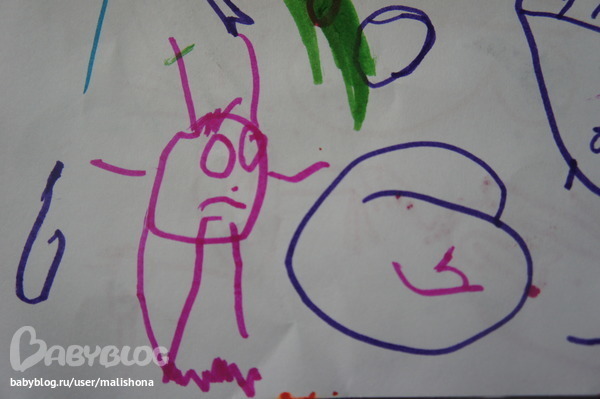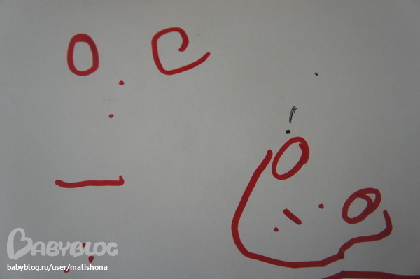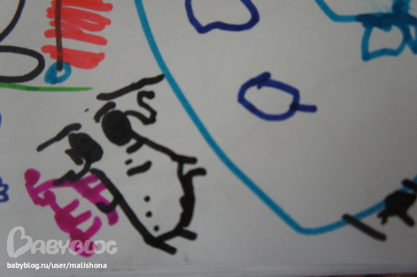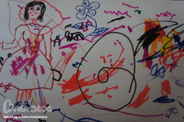 ДругоеЭто скорее не хвастушки, а вопросы о том, что и как рисует мой ребенок. Пофотала, что рисует дочка (2г3мес). Меня немного настораживает цветовая гамма, выбираемая ею во время рисования: он берет в основном черный, коричневый или темносиний фломастер (карандаш, краску) за редким исключением. Рисует лицо человечка (мультяшного персонажа) - ротик получается либо ровный, либо уголки губ опущены вниз. Очень долго просит нарисовать один и тот же персонаж, прям до одурения - целый альбом им зарисовываем))) Я стараюсь рисовать ей разные картинки - цветочки, деревья, маленьких принцесс, краски выбираю повеселее. Стоит уже о чем-то задуматься или она еще слишком маленькая? Наши художества под катом