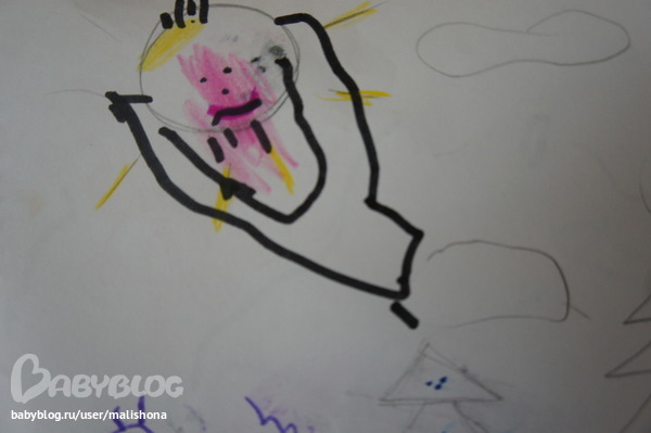 Нарисовала ей карандашом солнышко и попросила раскрасить - вот такое печальное и чёрное оно вышло(((