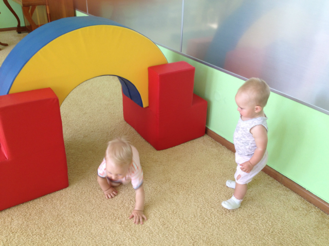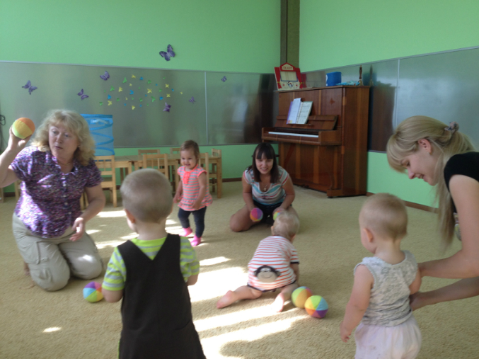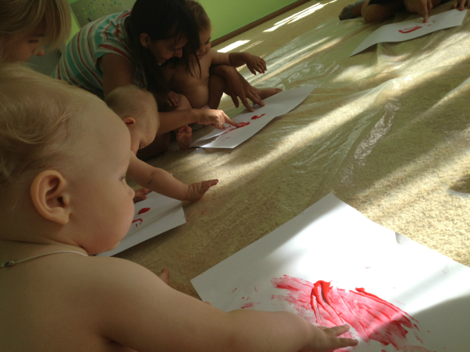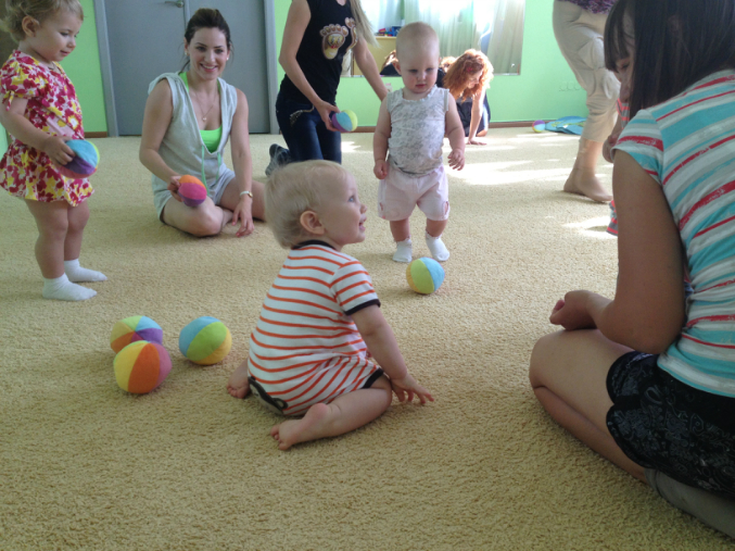 Нам очень понравилось. Даже после всего этого бреда, нам удалось настроиться на позитивную волну и получить кайф от 45 минутного занятия. Всего было пять деток и пять мам. Лева был самым младшим, остальным было 1,4 года и выже.Тетечка воспитатель, приятная, милая женщина. Когда мы сидели на полу, Лева подползал к ней и заглядывал снизу вверх в ее лицо))) Мы пели, танцевали, ходили по развивающим коврикам. Гладили и кормили игрушечную кису. Кидались мягкими мячиками. Рисовали пальчиковыми красками. Задували свечку в конце занятия.