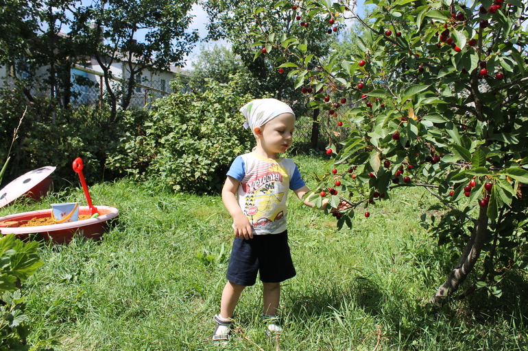 я теперь знаю,что если мне хочется пару минут спокойно посидеть в деревне, то я показываю Артёму куст малины,крыжовника или смородины и спокойно отхожу в сторону:Артём свое дело знает) даже косточки выплевывает-это я про вишню.