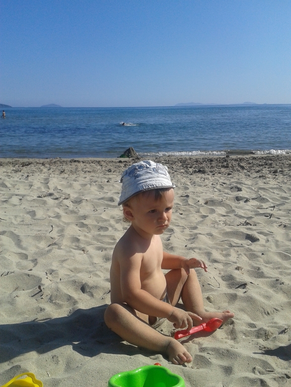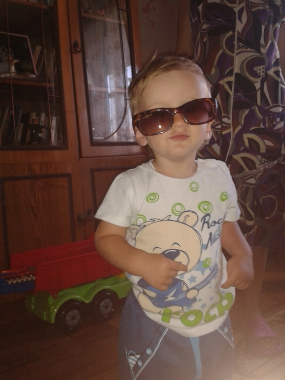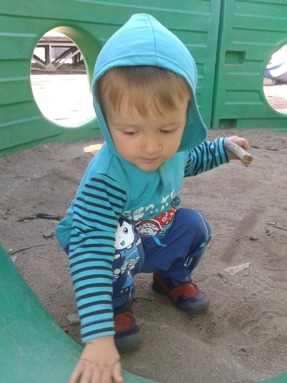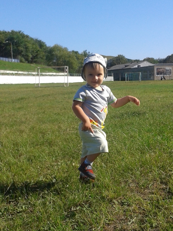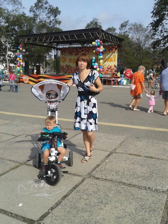 Добрались мы с горем пополам,спал только в самолете,а вот в машинах до и после очень сильно укачался.Да и папа еле отпустил с рук ((Не хватает нам его очень ((А теперь о хорошем.Бабуля не ожидала увидеть такого бандита и бунтаря)))Сёму не остановить,он как торнадо,проносится со скоростью света и оставляет после себя хаос.А есчё...мы вот уже неделю ходим гулять БЕЗ ПАМПЕРСА!!Сёма терпит до дома!Ура!!!!Теперь осталась только ночь.Еще купили велик, и теперь когда едем до дома,произносим звуки животных,которых выучили:курица,петух,волк,свинья,утка,гуси, киса,собака,остальные в процессе))Из новых слов у него появились балка (балкон),ёя (ёлка),палка,с ударением на последний слог,как и балка.Помогает по дому,убирает все на место,постель стелит,таскает одеяла и подушки,мужик же))Вот так:-)