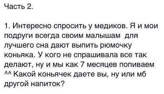 Первое конечно возможно разовая идиотка и попалась.при постановке на учёт по беременности справку из психдиспансера не спрашивают.А вот правда не коньяк а вино ребёнку чтобы спал лучше в регионах точно мамаши дают.Глубинка на 80% спилась уже-ничего удивительного в этом нет.У них ещё в животе стаж алкогольный начинается.