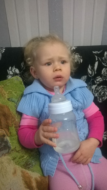 Питание: так же всё блендерю. Причем сушки, печенье, шоколадки, фрукты, хлеб, сыр ест прекрасно. Но не дай бог в супе или в пюре попадется неизмельченный кусок, тут же рвотный рефлекс. Пьет из бутылки или коктейли через трубочку. Больше всего любит компот из сухофруктов и молочные коктейли ФрутоНяня. Воду пьет без желания, что видно на фото: