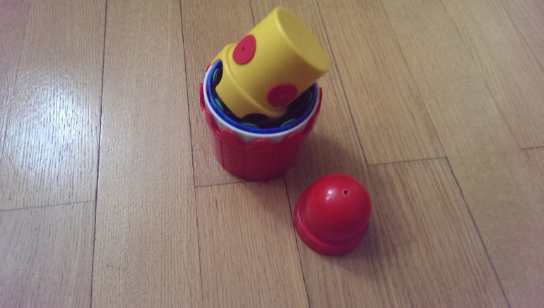9. Стаканчики из Икеи. Есть еще другие, набор побольше. Ломает мои башни, вставляет стаканчики друг в друга, пытается строить сама