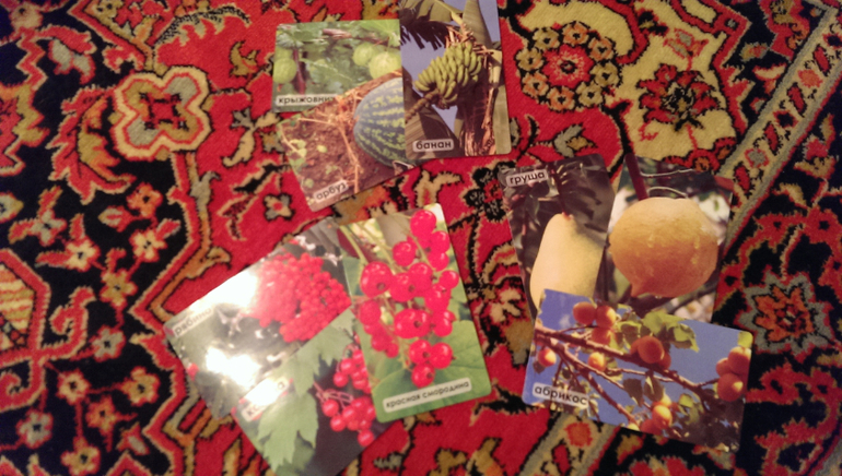 5. Играем с карточками. Тут карточки Умница. Раскладываем медведям, сортируем по цветам, просто разглядываем