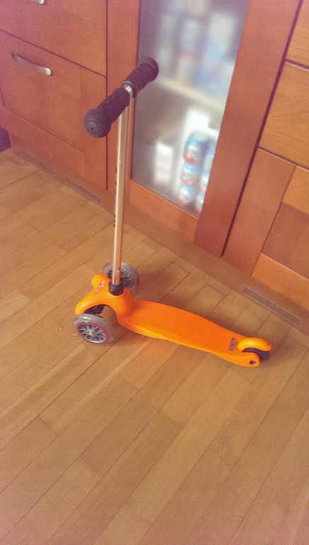 18. Самокат Micro - подарок на ДР. Я просила на вырост, чтобы привыкала. Пока катаю ее на нем, Лера стоит 2 ножками