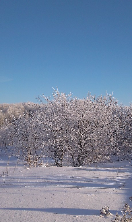 Утро было не менее прекрасным, голубое небо, деревья в белом убранстве, яркое солнце! И представьте, проснувшись утром ты чувствуешь, что ничего не болит, не спина, не шея, не ступни. Ну разве не сказка!