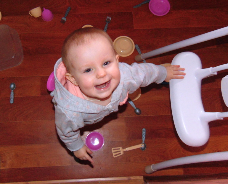 13. Научилась жадничать. "Ксюша, дай мне пожалуйста игрушку (книжку/носочек/пульт)" - прячет за спину и пятится спиной по-дальше чтобы не забрали.