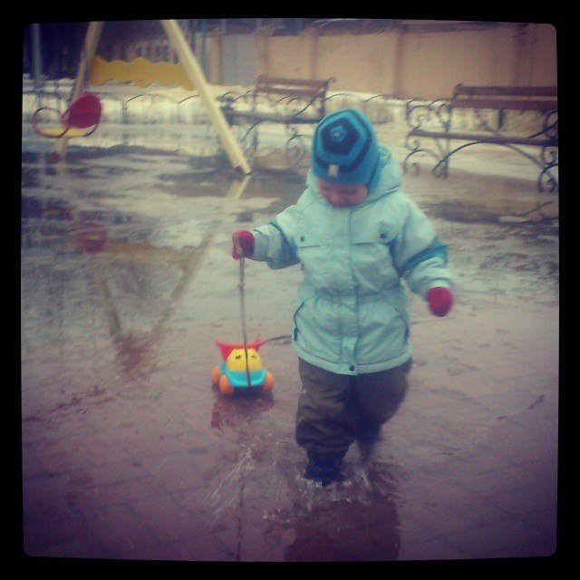 Фото под названием за 5 минут "до". Буквально через 5ть минут сын решил в этой луже искупаться)))) Посмеялись, пошли домой сохнуть и греться)
