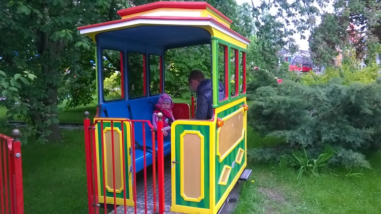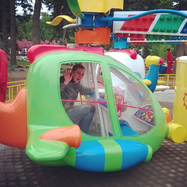 В прошлые выходные всей семьей съездили в "Диво-Остров" на аттракционы. Если созрею, напишу отдельный пост. А вкратце: Алиса прекрасно каталась с папой и со мной на малышовских каруселях (паровозики, вертолетики и т.п.), а старший деть Юлька сгоношила нас на экстремальные аттракционы, причем на Больших русских горках сама же рыдала от страха: