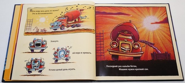 У нас такая есть, моему сынишке очень нравится эта книга, особенно любит то место, где бетономешалка зевает))), одна из самых любимых книг, если кто то в раздумье покупать или нет — очень рекомендую!