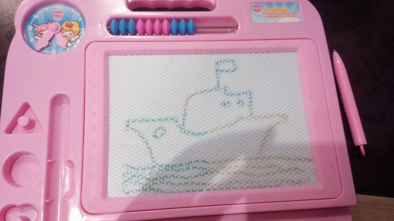Мы очень любим с Ксюхой в неё играть. Мы используем магнитную доску.