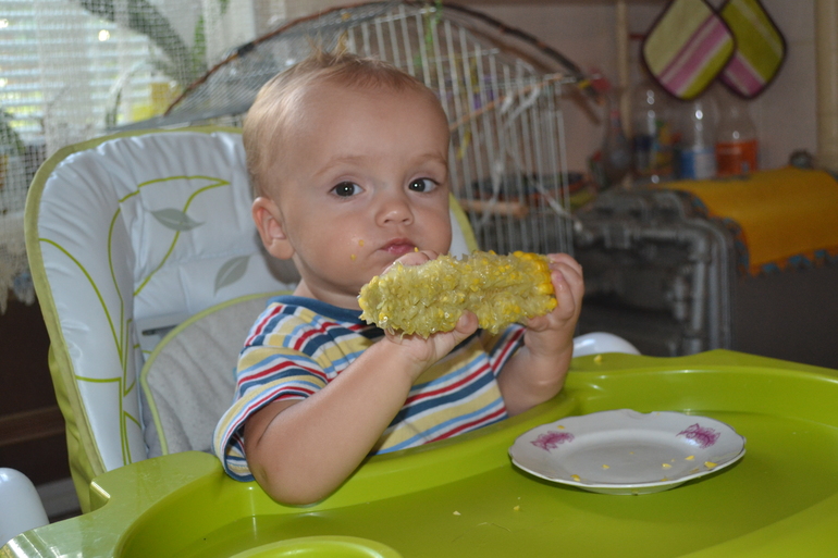Спит так же 2 раза в день. Ночью с двумя пробуждениями, проверить где мама и покушать,под утро. Собираюсь заканчивать ГВ. С едой проблем нету, кушает хорошо, все что предлагаю, любит молочку, фрукты. Ест и пюрешку, и супчики, и м'ясо/рыбу. Обожает хлеб, булочки и все такое) В магазине его реакция на хлебный отдел заставляет людей оборачиватся)))