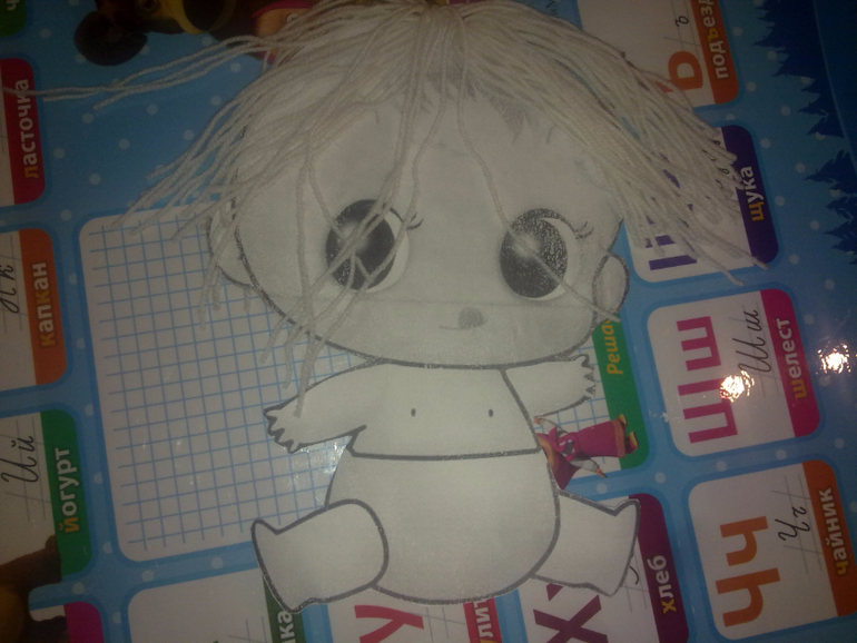 Зато сейчас, когда ребенок оброс и стал похож на домовенка Кузю, я начала готовить его к походу в парикмахерскую. Сегодня смотрели пару роликов на Ютубе, как стригут мальчиков. На дневной сон рассказала сказку как маленький волчок не хотел стричься, зарос бедняга, все его пугались и боялись с ним играть. Сделала бумажную куклу с шевелюрой из ниток, которую будем стричь.