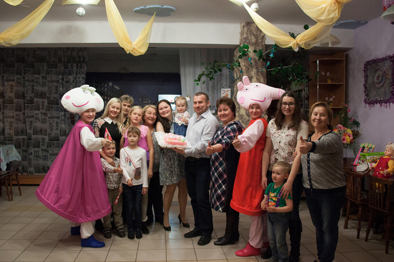 Так же были аниматоры, свинка пеппа и ее подружка овечка сьюзи. Тортик тоже был в тему праздника естественно