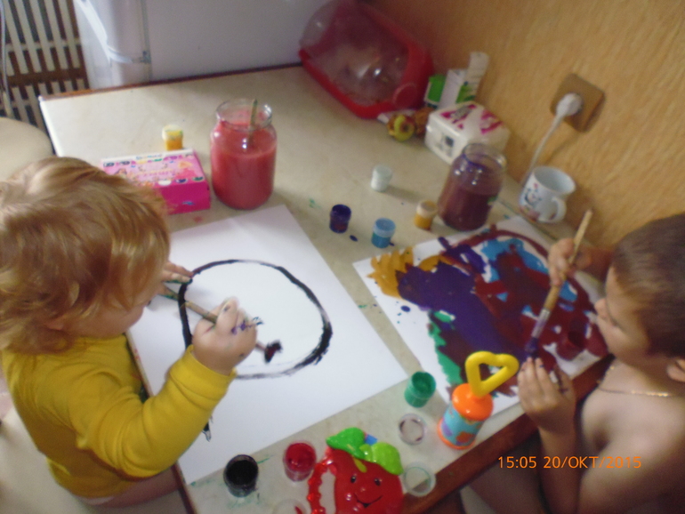 Это на самом деле было месяца три назад, сейчас Алина поаккуратней рисует красками уже.