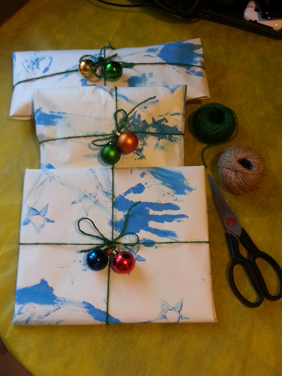 ДругоеК приезду деда Мороза мы с Димой сделали сами упаковочныю бумагу. Теперь она висит у нас на двери и ждёт новогогодней ночи.
