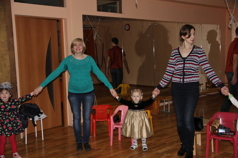 Затем качали деток в ткани, просто играли, водили хороводы)