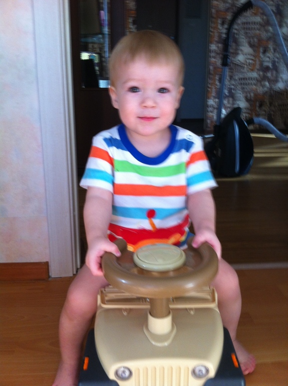 Как можно увидеть - катается наконец-то на своей машине. Будь она неладна! По всем ногам проедет, всю мебель отобьет.. меня вместе с собакой уже передергивает от звуков этой шайтан машины! Муж тоже сказал, что его эта машина заколебала знатно))