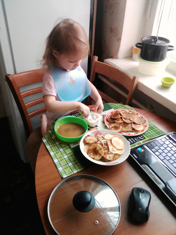 Всем привет. Дочке моей уже 2,4. Сегодня у нее был тяжелый день - в саду укусили ее за пальчик, так эмоционально устала, что после прогулки еле домой ее затащила. Ревела и визжала... уложила ее спать и решила дочку порадовать блинчиками, ей они очень нравятся.![]()