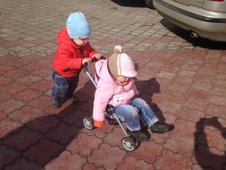 Здорово на прогулках она освоила самокат! Сейчас мы у бабушки, как вернемся из путешествий, думаю купить ей. Она очень быстро его поняла, мы берем на площадках от случая к случаю, так что тренироваться времени особо нету. Но принцип уловила сразу, отталкивается ножкой и вперёд!