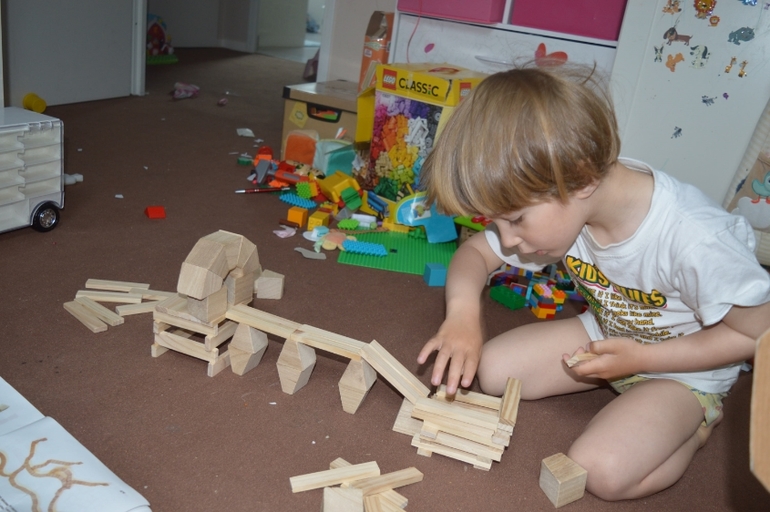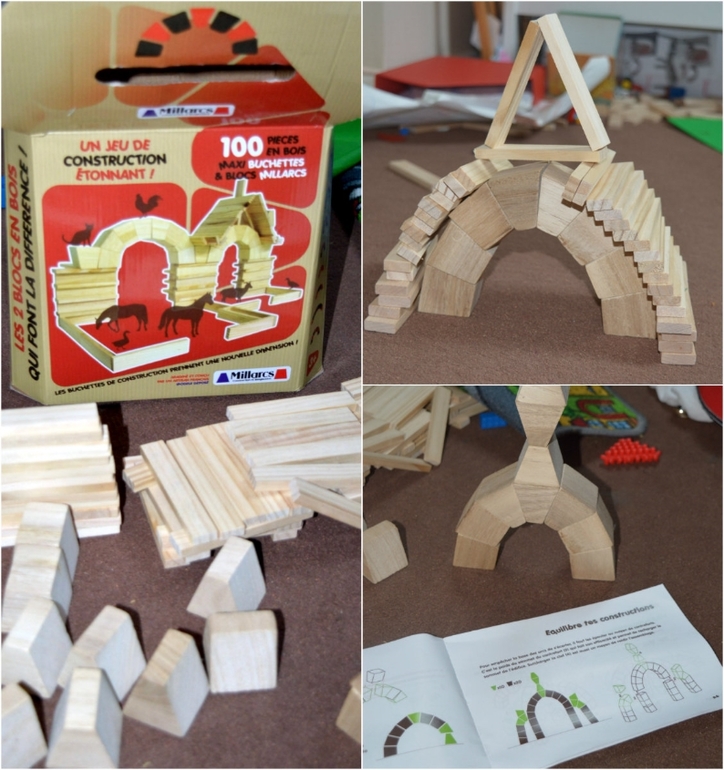 Я уже не раз писала об одной из САМЫХ любимых наших игр - брусочках для стройки типа Капла. А тут мне встретилась такая же штука, но расширенная версия - вдобавок к брусочкам еще и (ээээ? как эти штуки называются? трапеции?) в общем, детальки, из которых можно строить башни, арки, своды и мосты. Там к ним прилагается книжечка инструкция, и оказывается, Антуан даже кое с чем способен разобраться! Так что всем "строителям" советую, класс, я сама с удовольствием строю. Только сразу скажу, деталек мало, придется потом подкупать. Трехлетке-то хватает, но папе нет что-то серьезное не построишь.