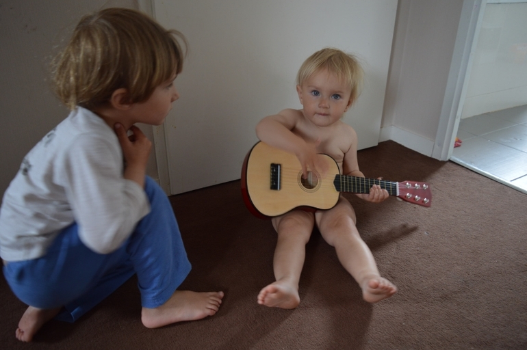 Если кому интересно (такому же нетерпеливому как я), то Грег сказал, что до минимум 6 лет смысла брать уроки музыки никакого нет. Он говорит, что это хорошо, иметь инструменты или их детские аналоги в доступе, бренчать по желанию, но надо ждать, пока дорастут. Инструменты я собрала уже все. Как по анекдоту "рояль купил, играть не купил".)))