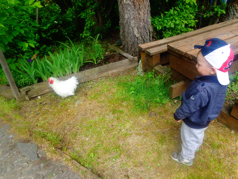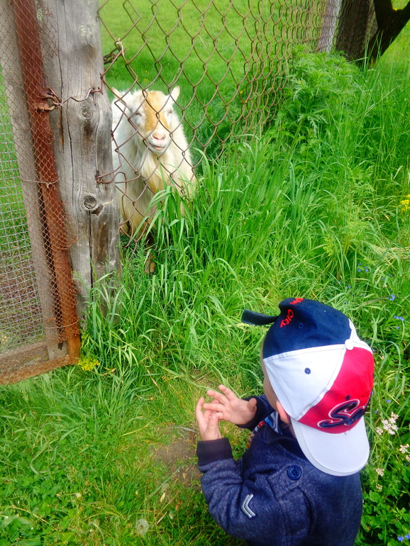 Специально для Захара, мы ездили смотреть животных. Дома он вряд ли таких увидит, не хочу, чтобы он пошел в школу, а корову и козу видел только на картинке. Никакой контактный зоопарк не заменит курицу в естественной среде )))))