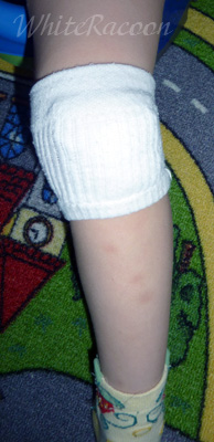 Моя двухлетка коленки била просто жуть как, оказалось, обувь такая, "носами загребучая", но дырявые коленки одно лето прям кошмаром нашим были. Пробовала надевать защиту для роликов: она жёсткая и жаркая, в ней бегать неудобно, ноги потеют и чешутся. Позже уже увидала наколенники в продаже, мягенькие, с резиночками, но стоят.... Короче, сшила сама, вышло недурно, потом несколько человек интересовались, где покупала.