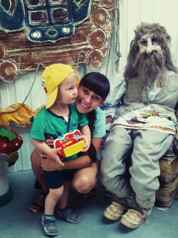 А вообще Захар - мой друг. Когда я дома, мы все делаем вместе: едим, играем, собираем, лепим, рисуем, готовим, купаемся (я надеваю купальник и залажу с ним в ванную играть), гуляем, ездим по магазинам...В последнее время сынок очень полюбил ездить с нами по воскресеньям на рынок. Мы с самого начала покупаем ему большую-большую печеньку, как тульский пряник по размеру и идем за продуктами. Для сына это как развлечение, тем более там еще какая-то выставка сказочных персонажей на входе, так раньше, наверно, на ярмарку ездили, скоморохов не хватает)))) Вот это как раз на рынке)))