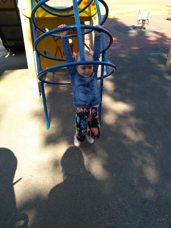 Пытаюсь уложить спать с 15 до 17, может и заснуть и проспать до 19, но это уже поздно. Вечером отбой в 22-00. С вечерним сном редко проблемы, засыпает в темноте в кроватке своей. Держу её за руку.