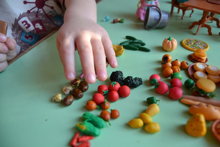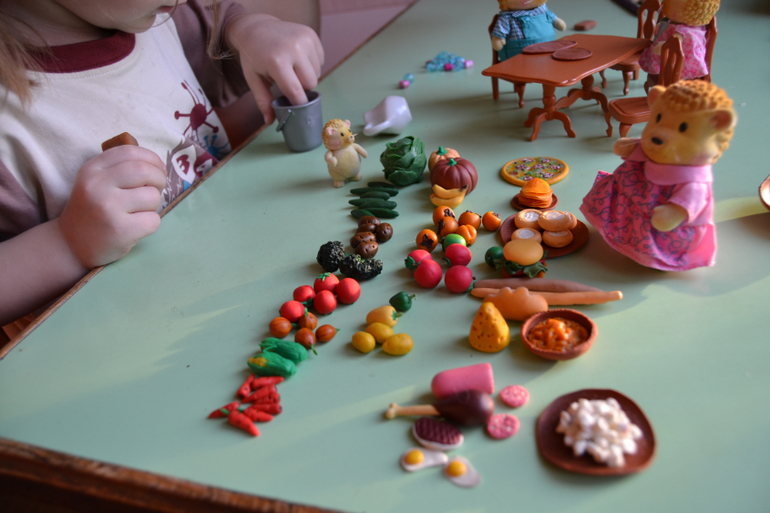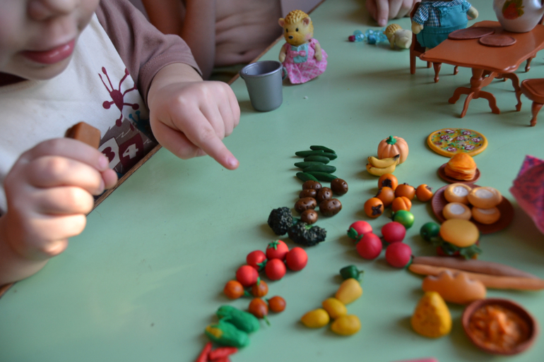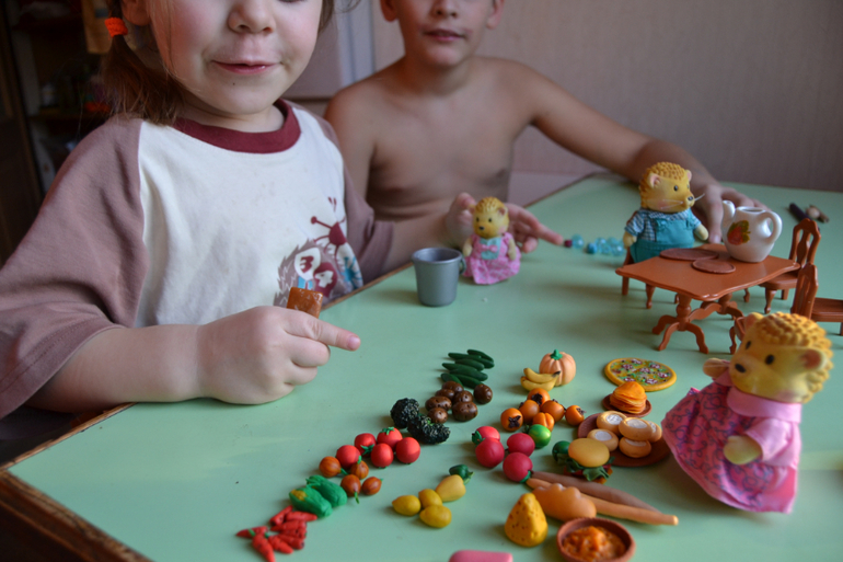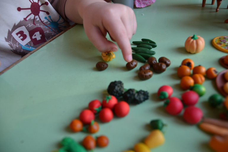 счетного материала, сортировок-дома ведрами, сейчас страсть поутихла, точнее перешла на мааааааленькие предметики. Хм, три года человеку, я как-то не ожидала. Ну да ладно, вовремя приехали к нам малепусенькие фруктики и теперь счастье есть-играем в магазин (деньги у нас-бусинки), это меня очень радует-счет в пределах пяти дочь освоила на ура, понимает что значит-добавить два, отнять три и тд.
