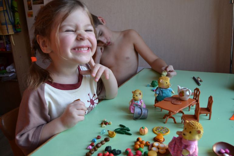 потом в семью и чаепитие, так тщательно всех рассаживает))))) причем у дочки в голове отложилось, что семья-это когда папа, мама, брат и она.....остальное за семью не считается.